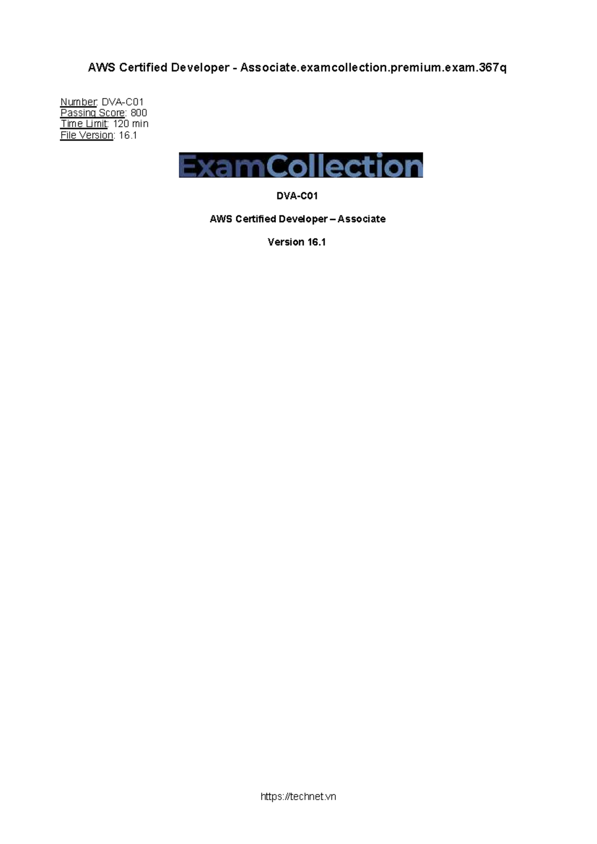 AWS Certified Developer Associate Exam - Premium Exam 367Q Notes - Studocu