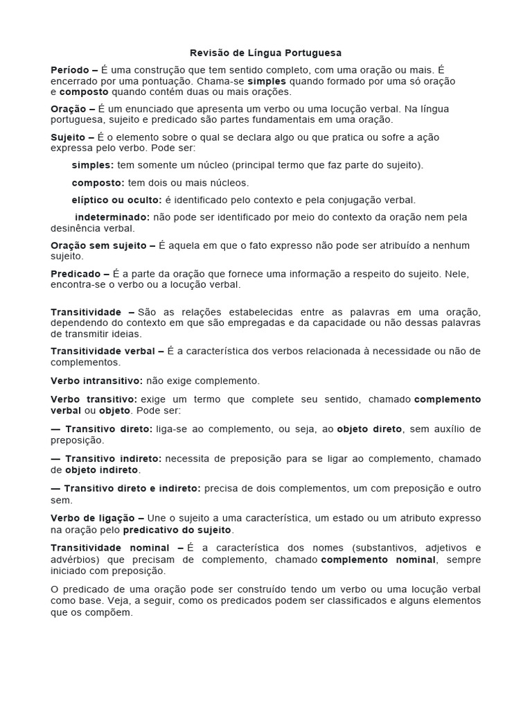 Revisão de Portugues | PDF | Assunto (gramática) | Predicado (gramática)