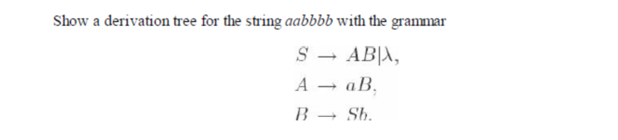 Solved Show a derivation tree for the string aabbbb with the | Chegg.com