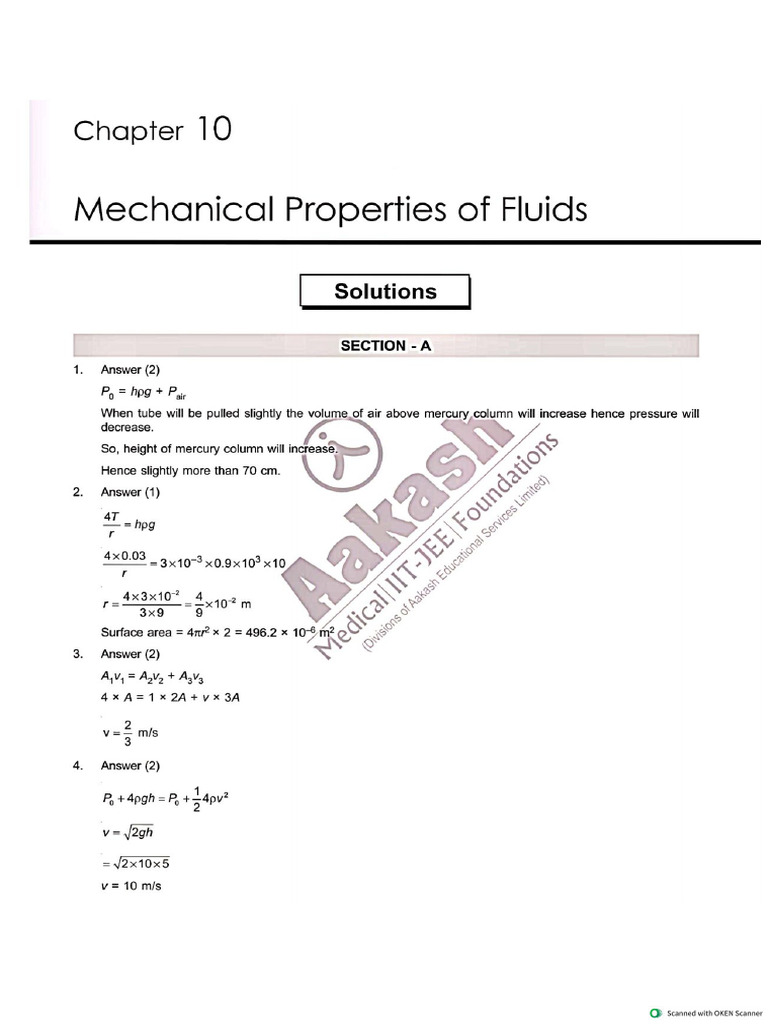 MECHANICAL PROPERTIES OF FLUIDS ONE SHOT AAKASH MODULE SOLUTION NCERT ...
