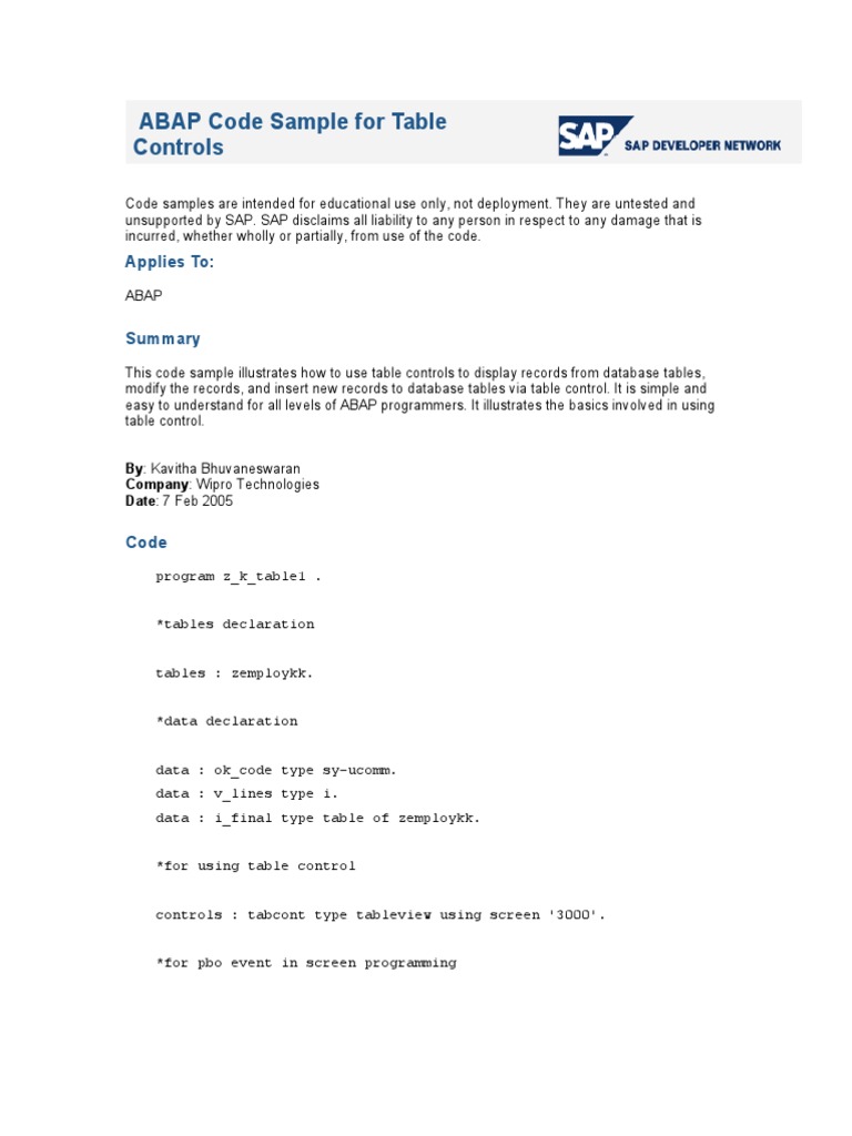 ABAP Code Sample For Table Controls: Applies To | PDF | Information ...