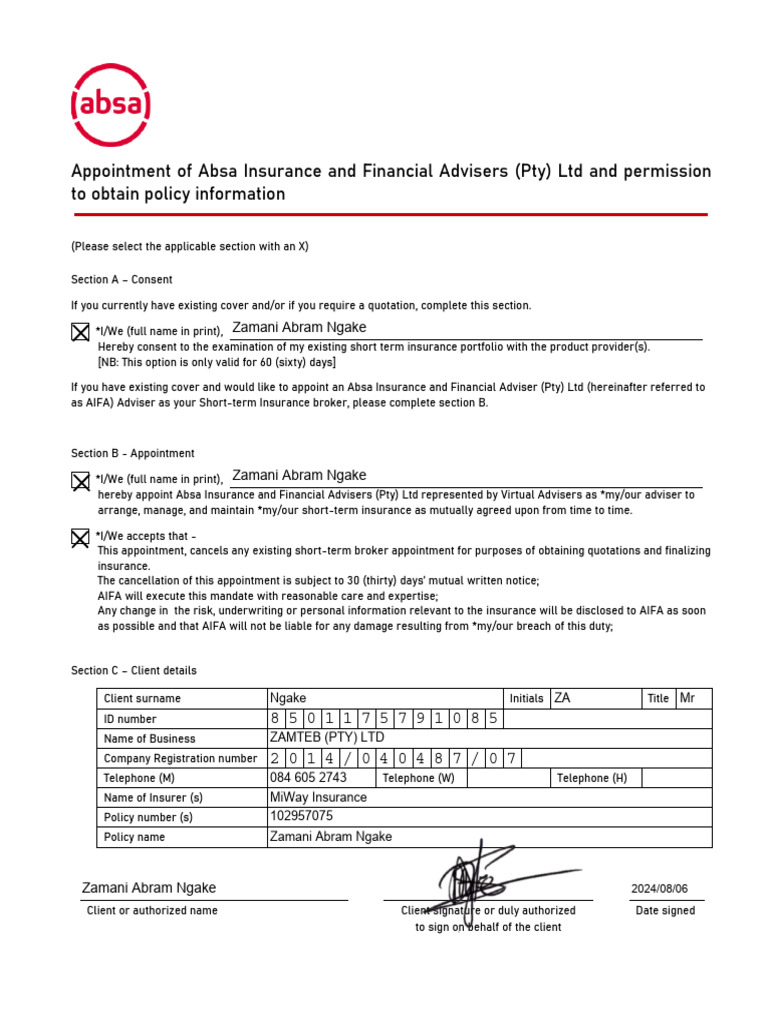 Absa Form Ab 41A ≡ Fill Out Printable PDF Forms Online
