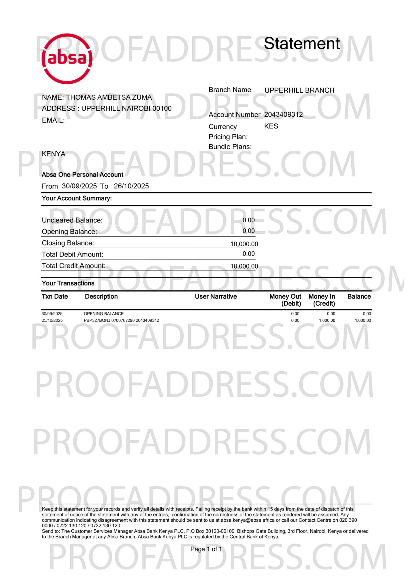 Absa Affidavit To Confirm Address - Fill Online, Printable, Fillable ...