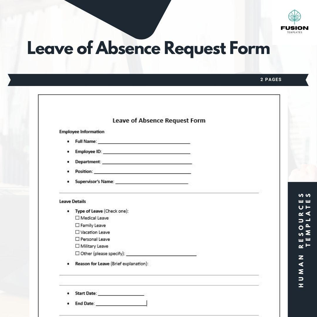 Leave of Absence Form Editable and Printable HR Template | HR Templates ...