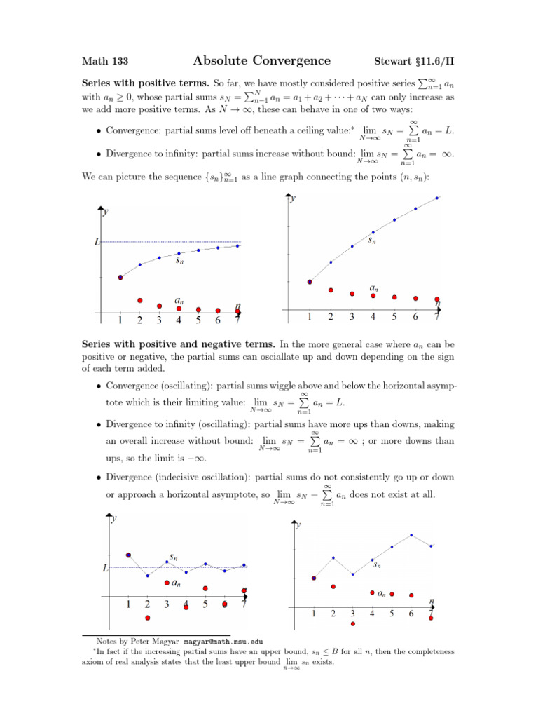 Lecture Notes on Absolute Convergence and Examples | MAT 169 - Docsity
