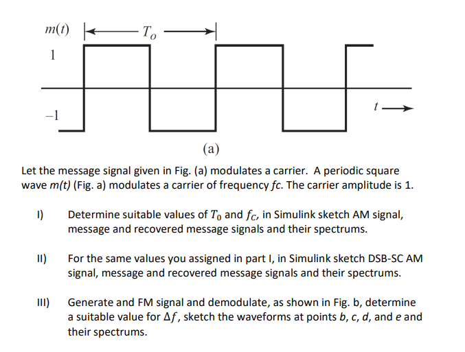 Let the message signal given in Fig. (a) modulates a | Chegg.com