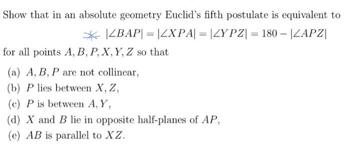 Solved Show that in an absolute geometry Euclid's fifth | Chegg.com