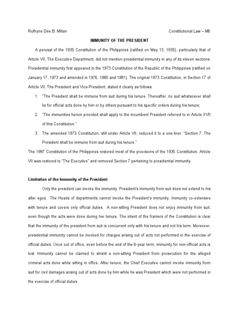 Immunity of The President | PDF | Sovereign Immunity | Presidents Of ...