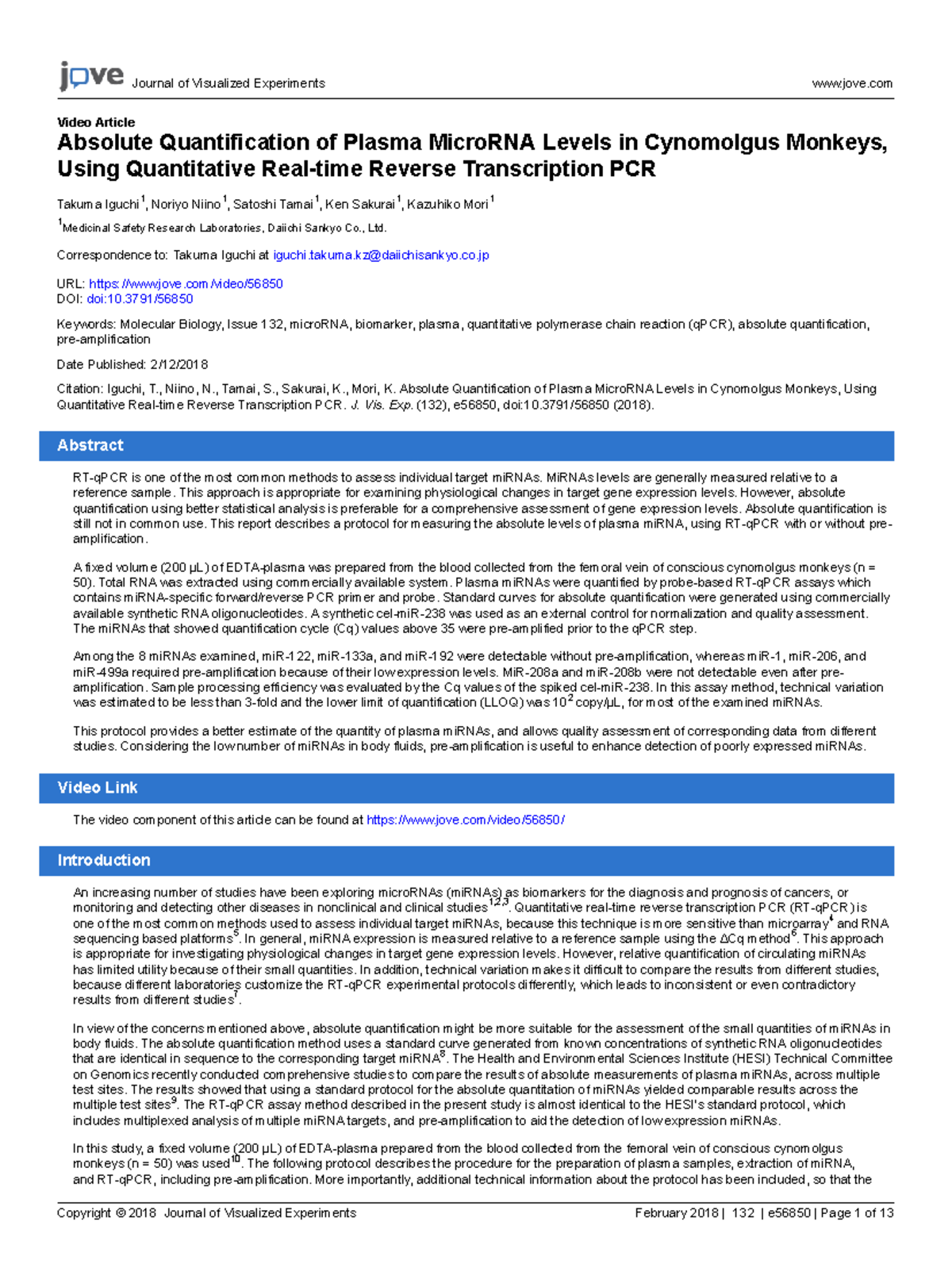 Absolute Quantification of Plasma MicroRNA Levels in Cynomolgus Monkeys ...