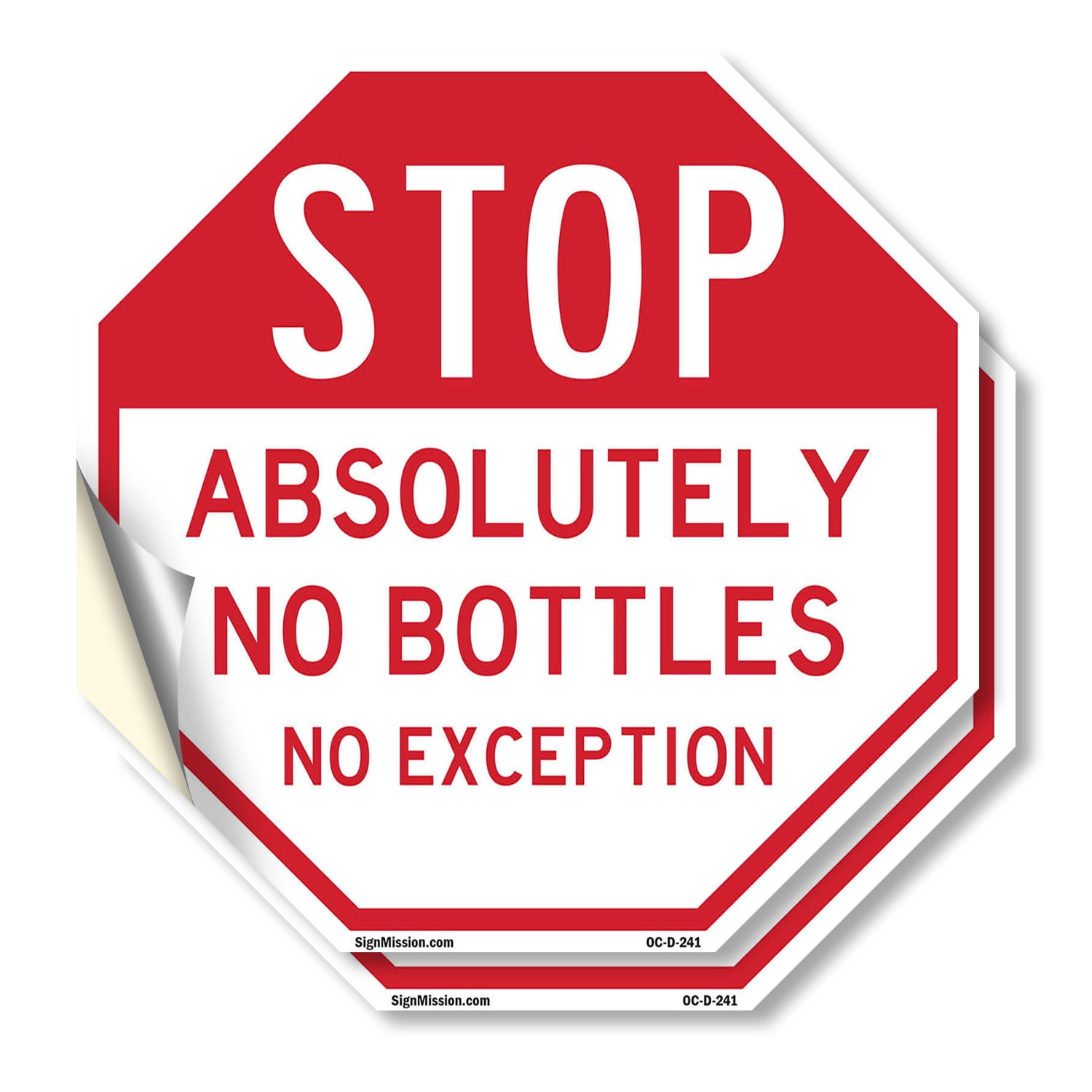Stop Absolutely No Bottles No Exception (2 Pack) 6 inch X 6 inch ...