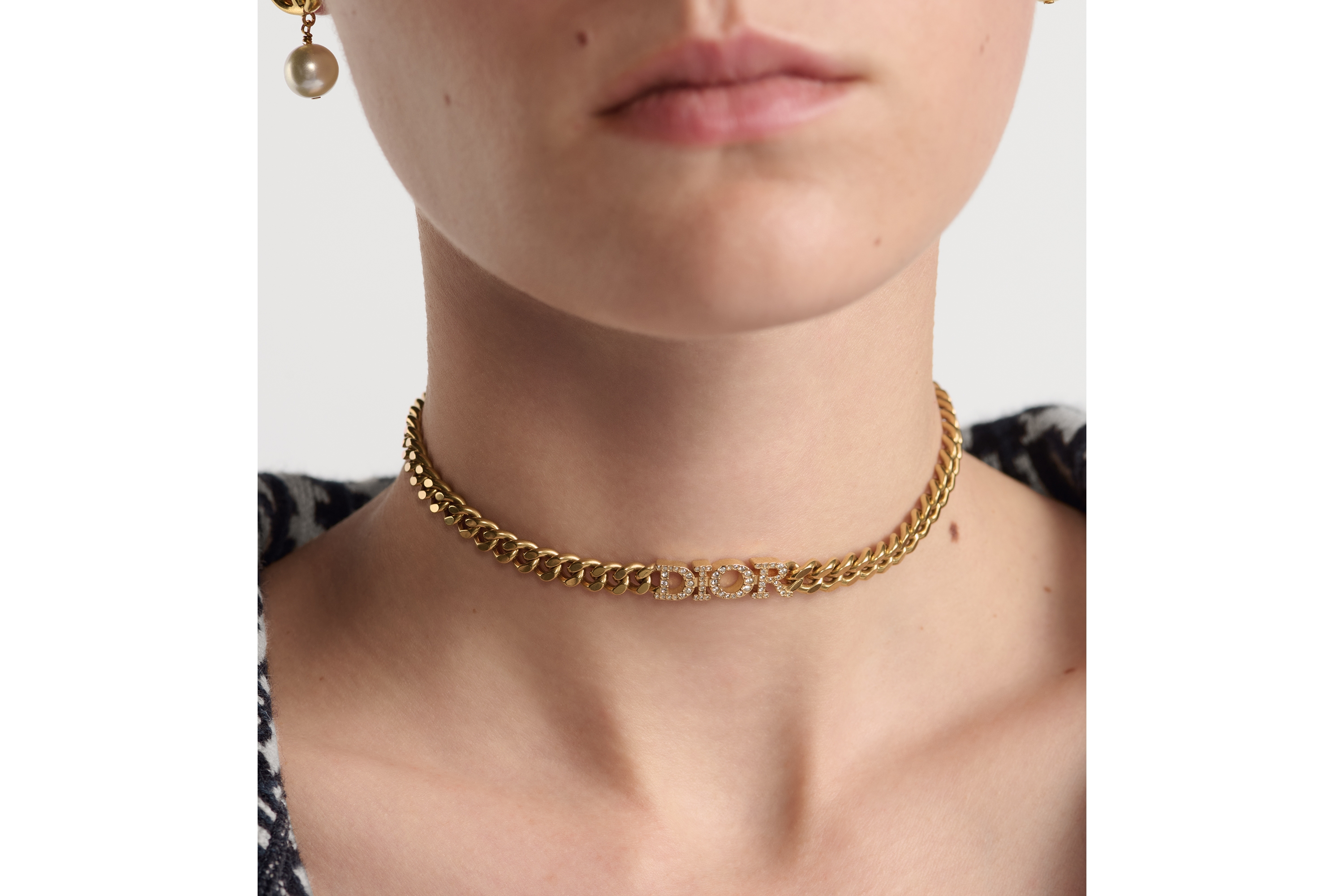 Dio(r)evolution Choker Gold-Finish Metal and White Crystals | DIOR