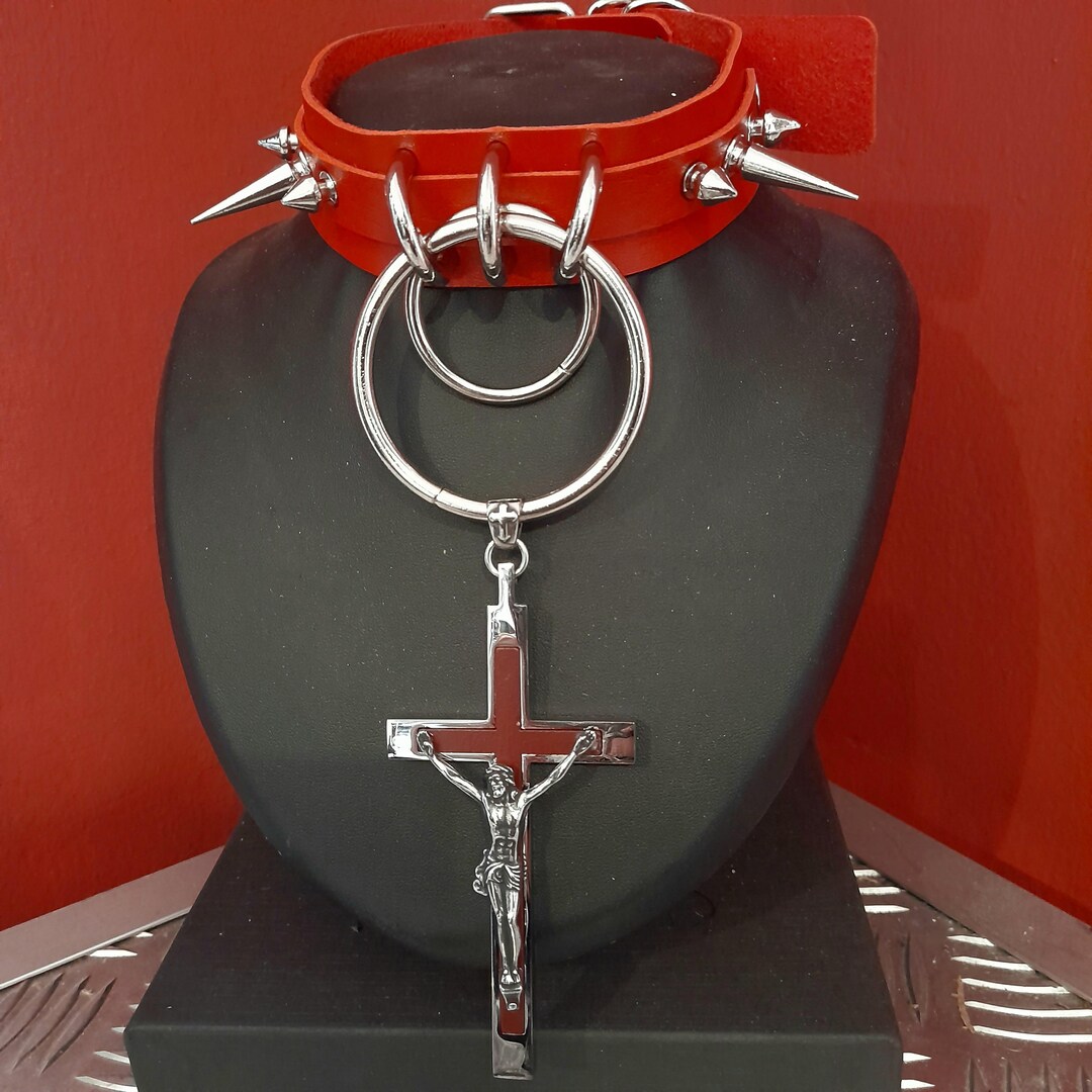 Red Crucifix Choker - Red Choker - Red Gothic Choker - Christian Choker ...