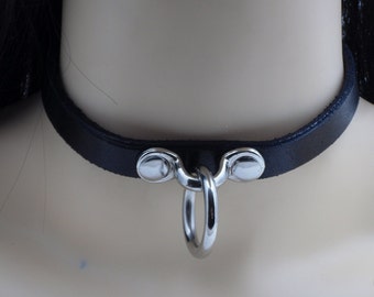 Handcrafted Classic Bondage Choker with Single Black Ring