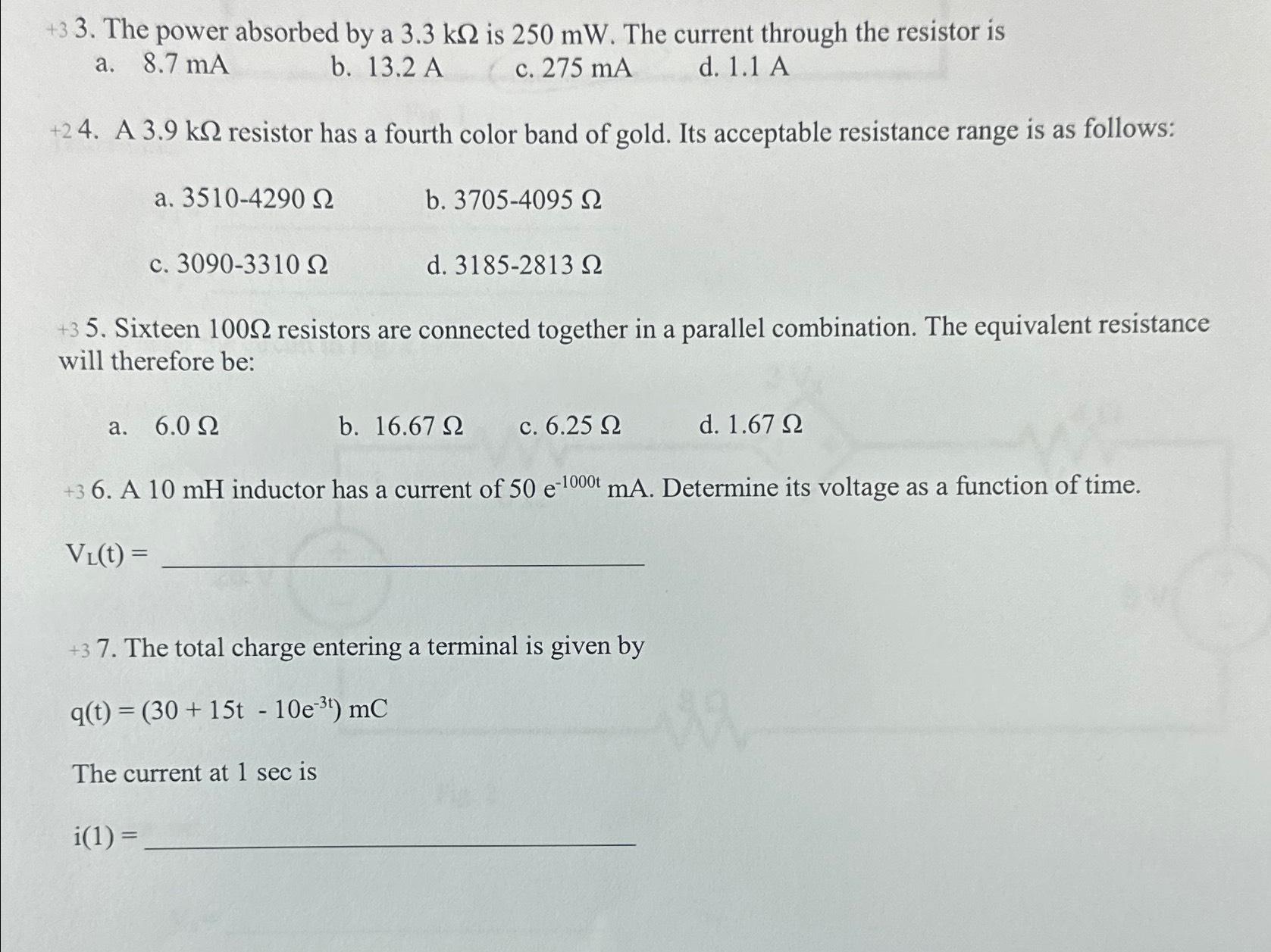 Solved The power absorbed by a 3.3kΩ is 250mW. The current | Chegg.com