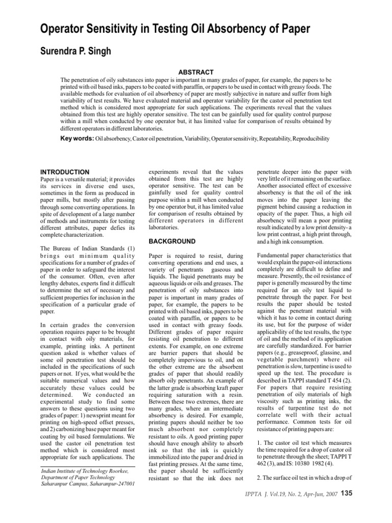 Operator Sensitivity in Testing Oil Absorbency of Paper | PDF ...