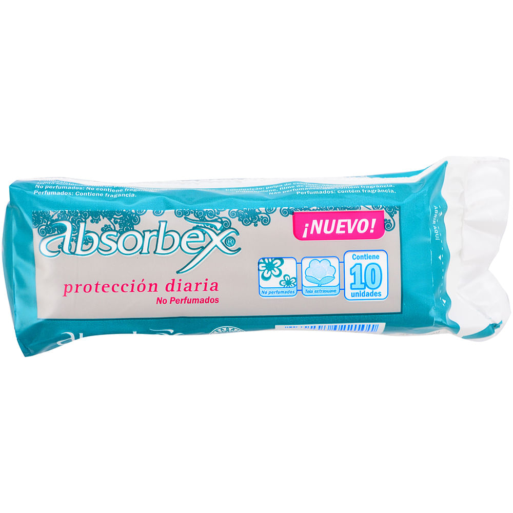 PROTECTORES DIARIOS ABSORBEX 10 UNIDADES SIN PERFUME — El Clon