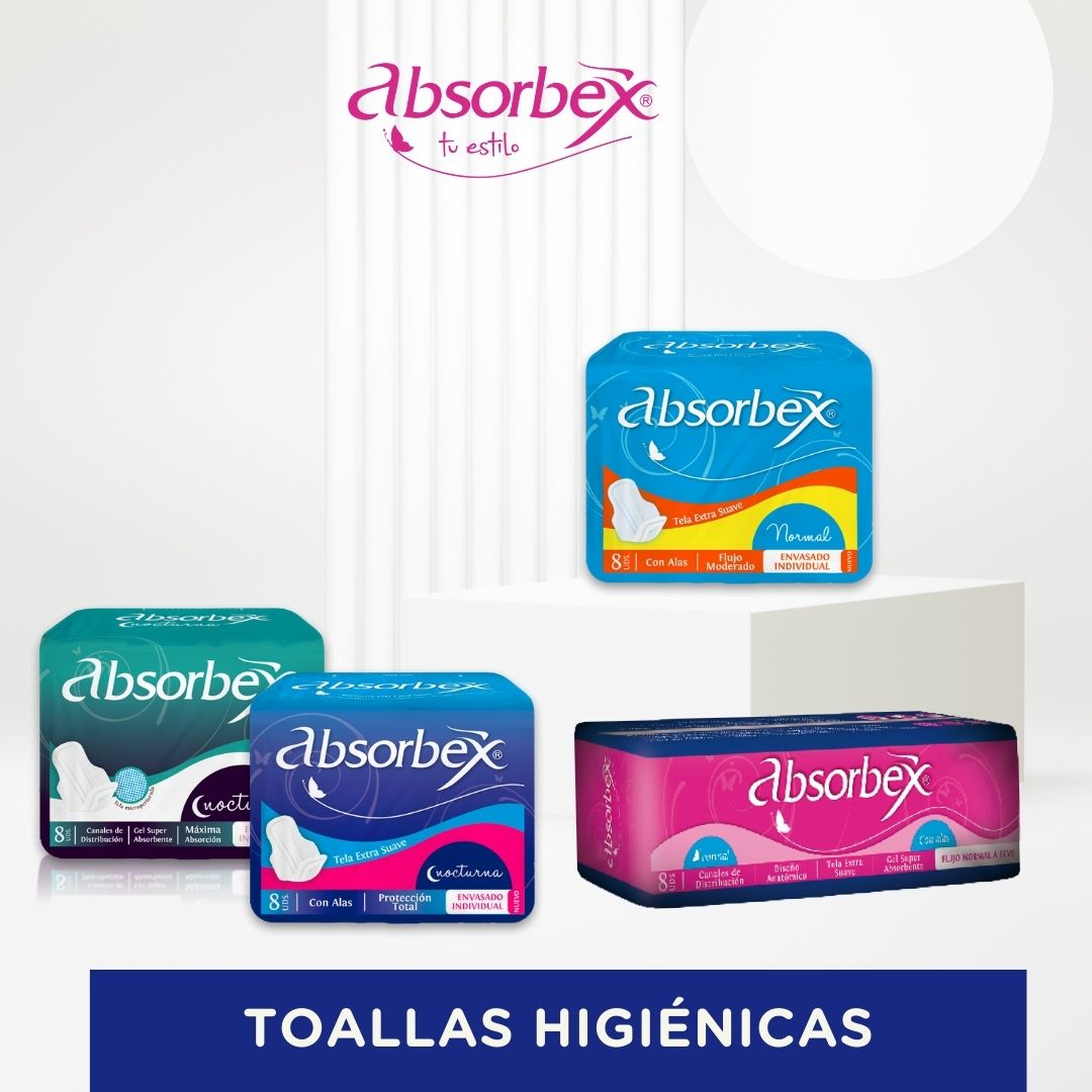 Toallas Femeninas ABSORBEX Nocturnas Tela Suave x8 Unidades en Tienda ...