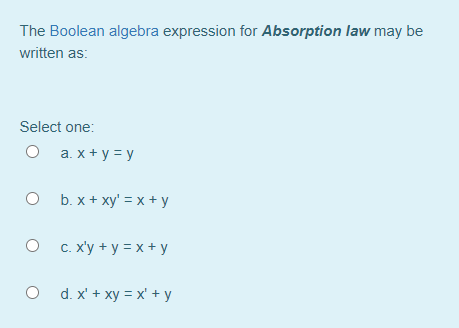 Solved In Boolean Algebra, Absorption law is that | Chegg.com
