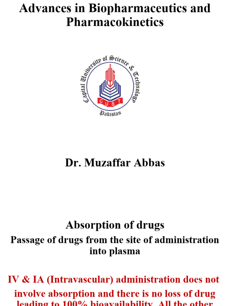 PPT - Pharmacokinetics of Drug Absorption by Dr. Mohammad Issa ...