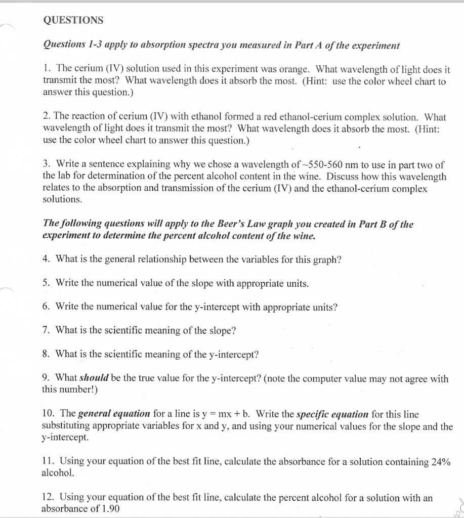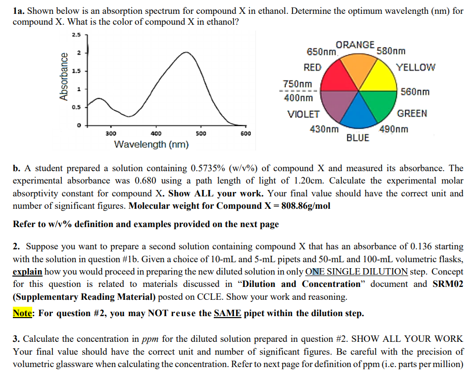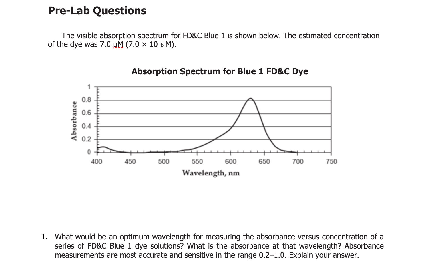 Solved Pre-Lab Questions The visible absorption spectrum for | Chegg.com