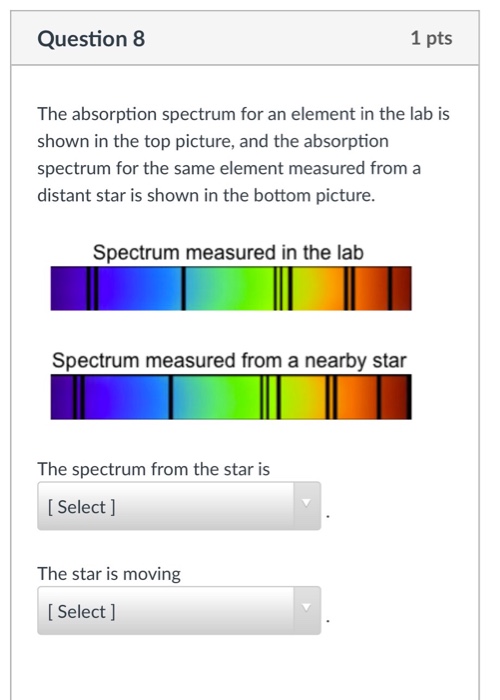 Solved Question 8 1 pts The absorption spectrum for an | Chegg.com