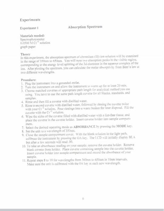 Experiments Experiment Absorption Spectrum Materials | Chegg.com