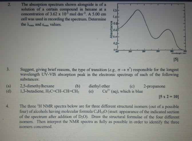 Solved 2. The absorption spectrum shown alongside is of a | Chegg.com