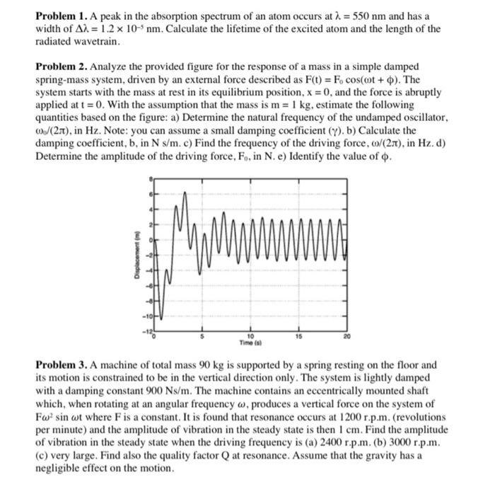 Solved Problem 1. A peak in the absorption spectrum of an | Chegg.com