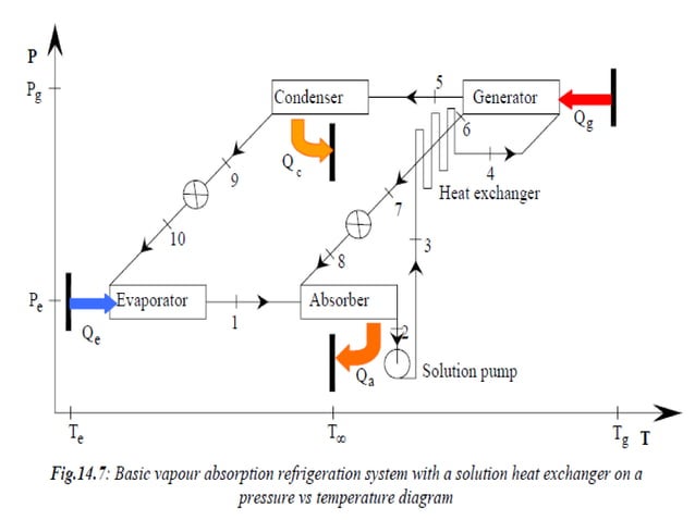 6 vapor absorption cycle components on pressure vs temperature diagram ...