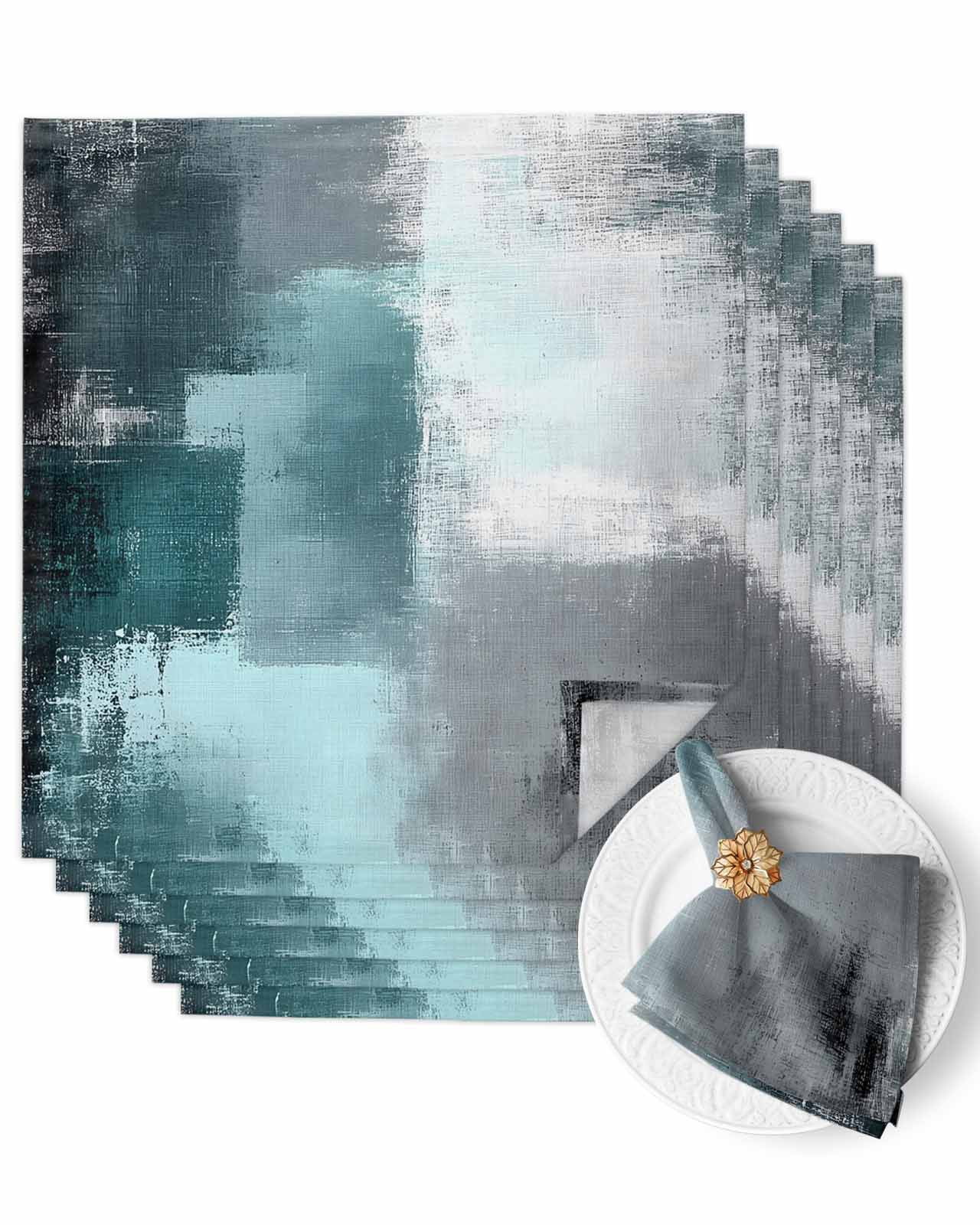 Cloth Napkins Abstract Color Block Bronze Gray Washable Soft Kitchen ...