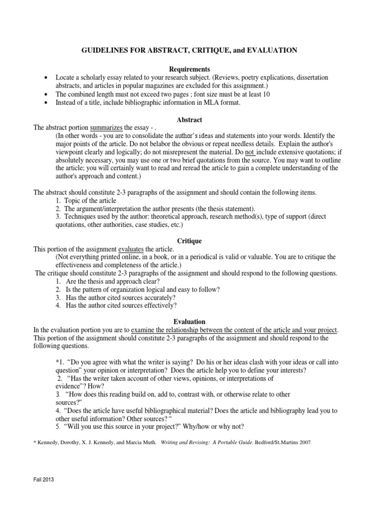 Abstract Critique Evaluation Fall 13 | PDF | Abstract (Summary) | Thesis