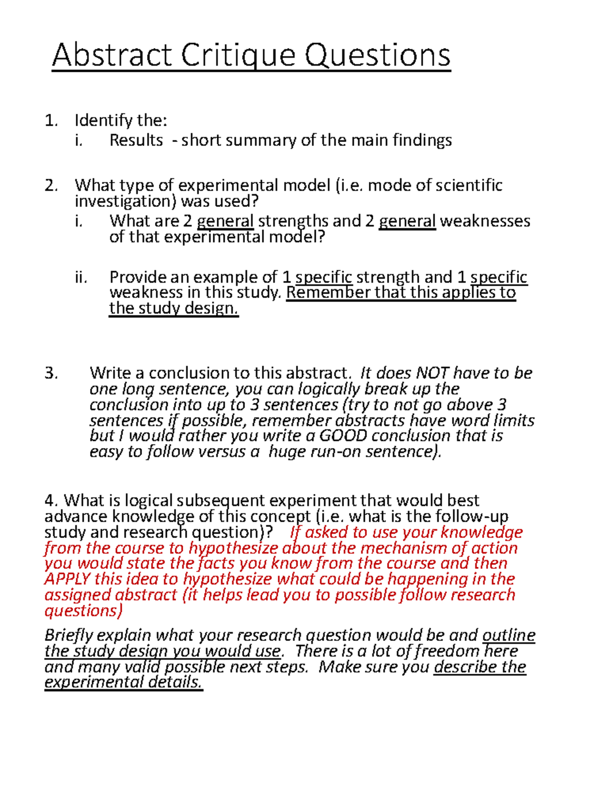 Abstract Critique Questions for Scientific Investigations - Studocu