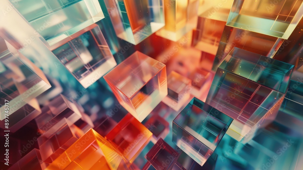 Abstract 3D cubes with varying sizes and colors, creating a sense of ...
