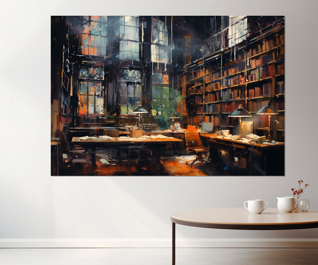 Abstract Library Oil Painting Canvas Print, Library Wall Decor, Framed ...