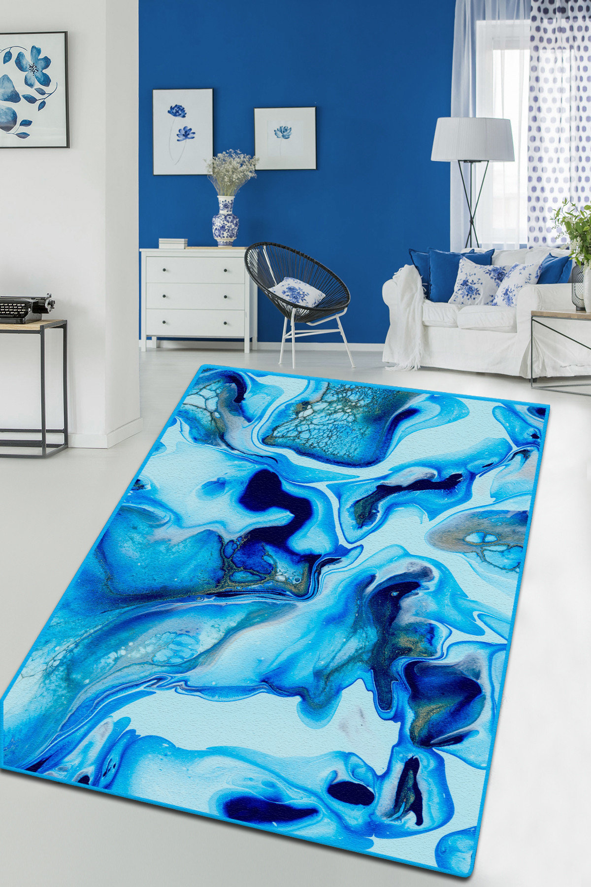 Mercer41 Jasperd Abstract Machine Made Polypropylene Area Rug in Blue ...