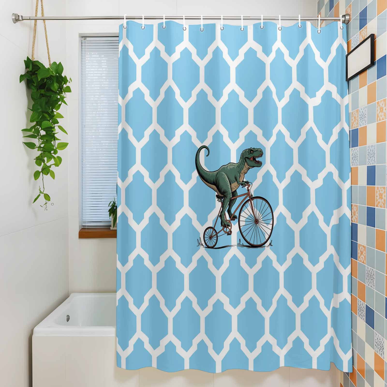 Abstract Dinosaurs Riding Bicycle Shower Curtain for Bathroom, Blue ...