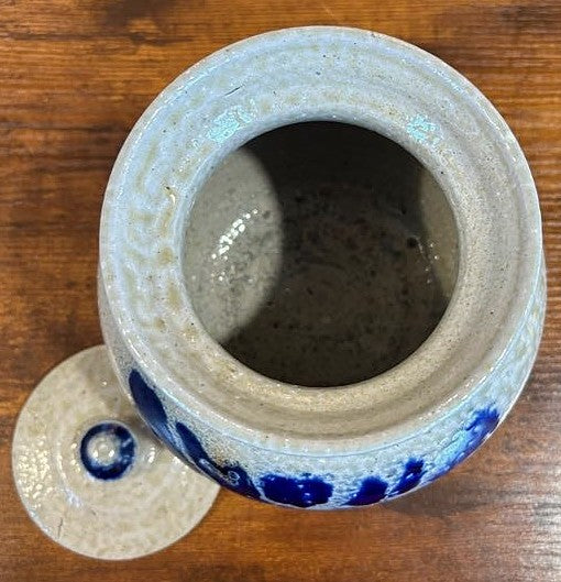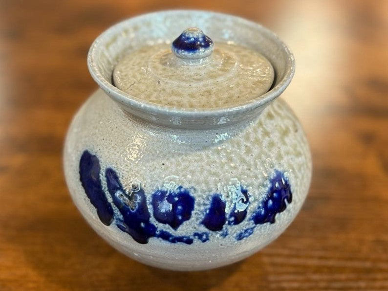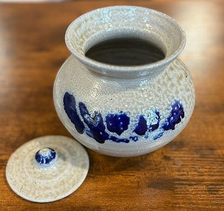 Authentic Jugtown Pottery Salt Glazed Lidded Jar with Cobalt Blue Deco ...
