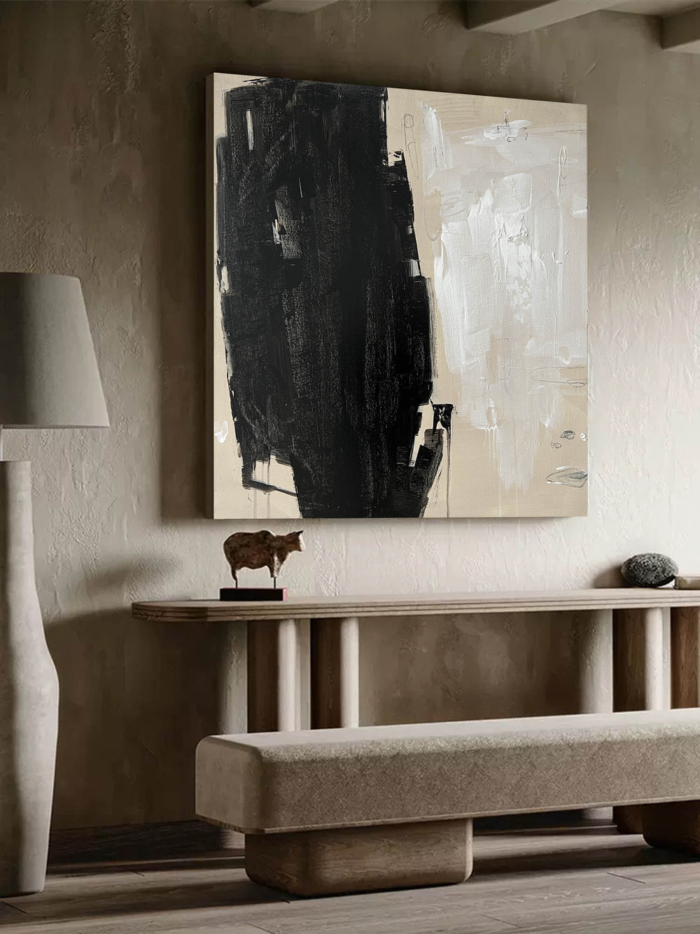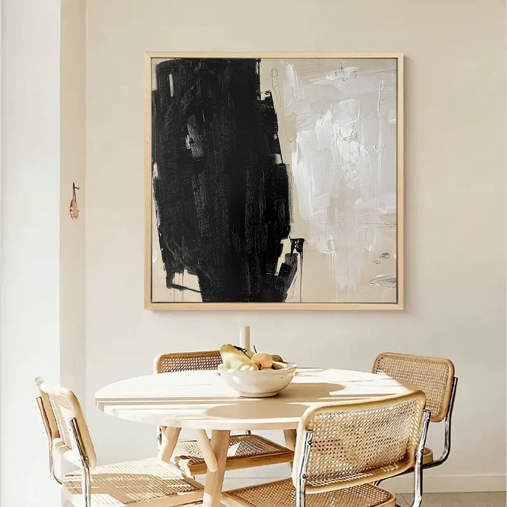 Large Abstract Minimalist Painting Black White And Beige Minimal Canvas ...