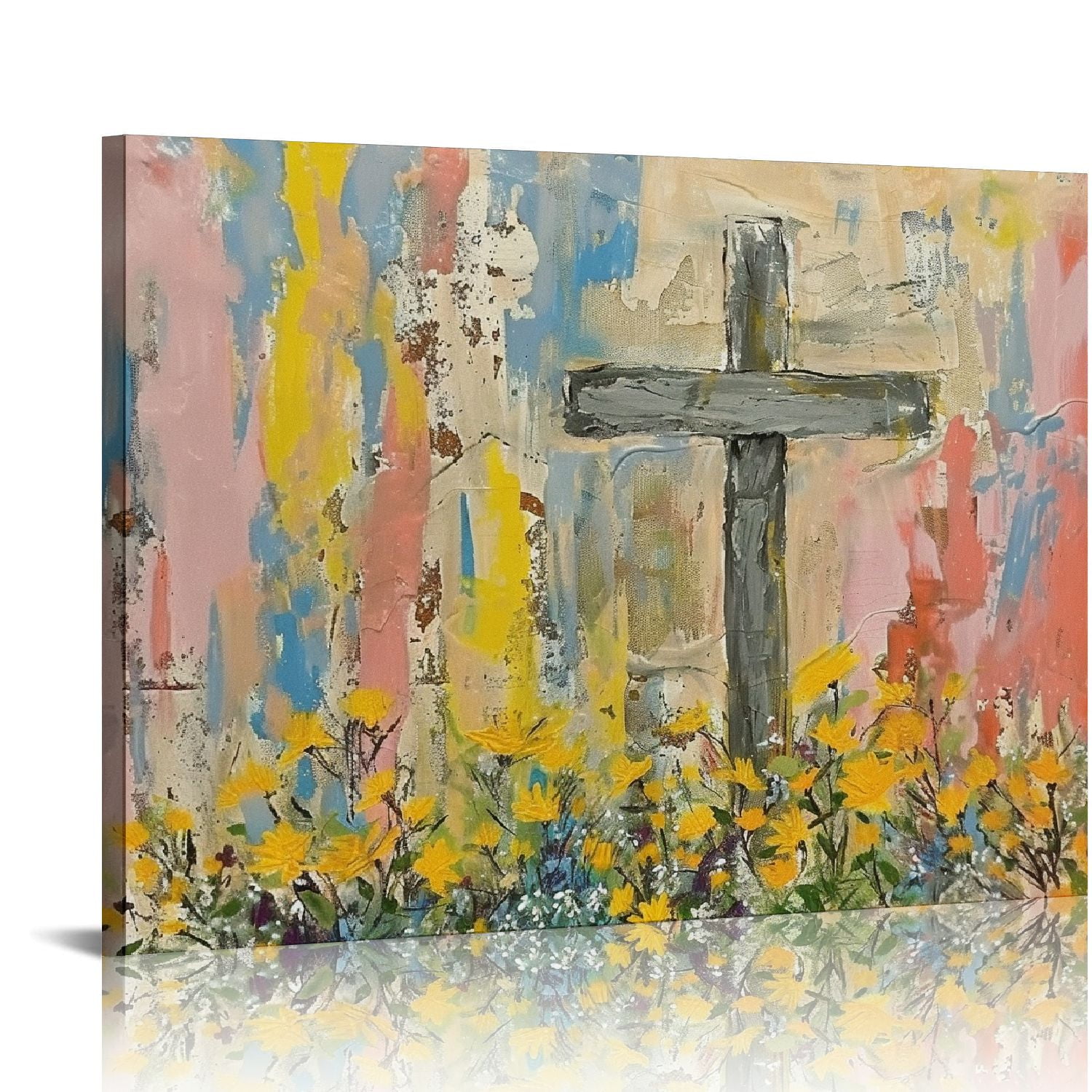 Nawypu Framed Cross Flower Wall Art Christian Floral Canvas Prints ...