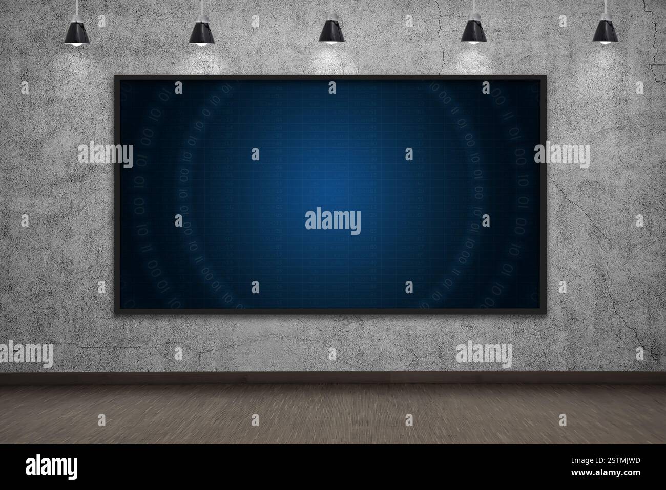 Abstract spreadsheet and analytics data on digital screen in concrete ...