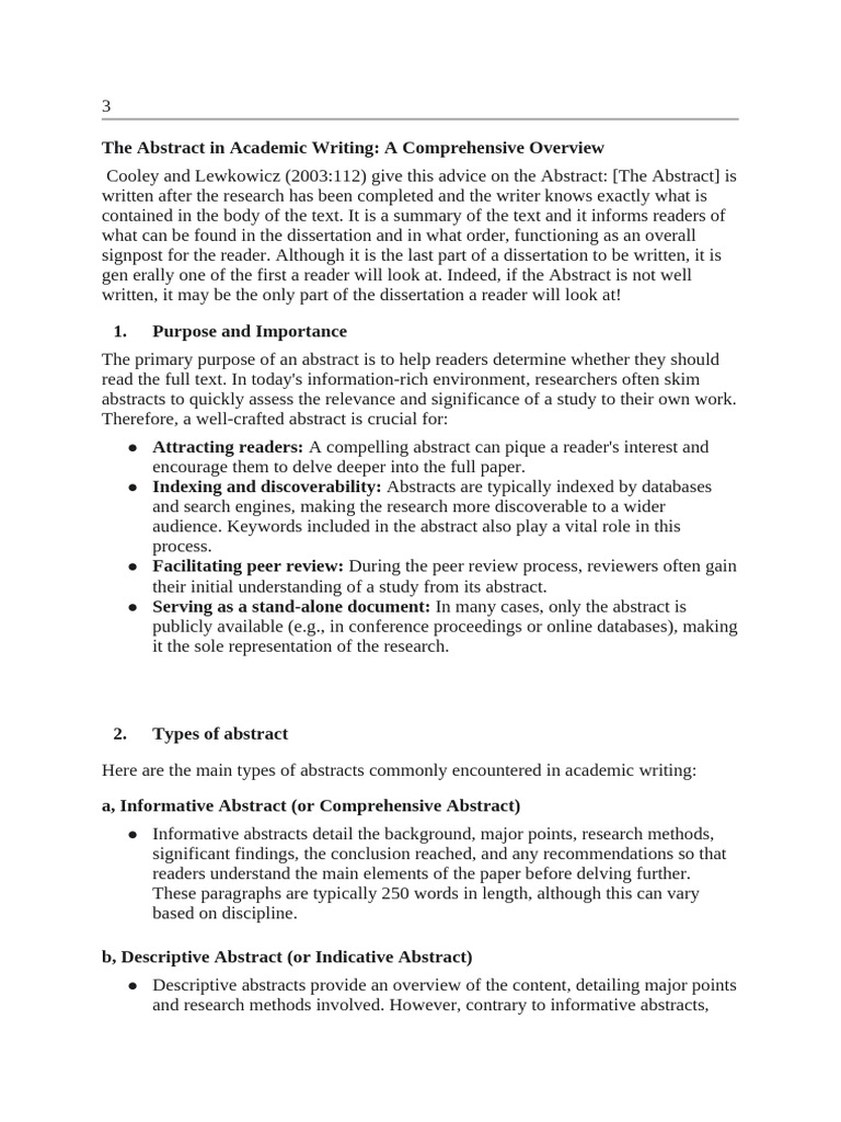 The Abstract in Academic Writing - A Comprehensive Overview | PDF ...