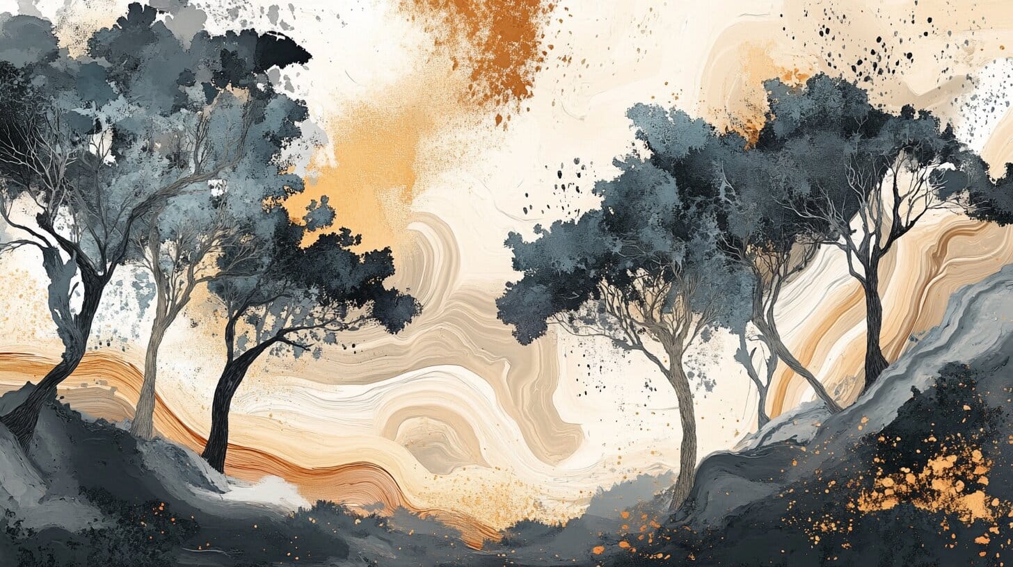 Transform Your Space: Stunning Abstract Landscape with Trees Wall Mural ...