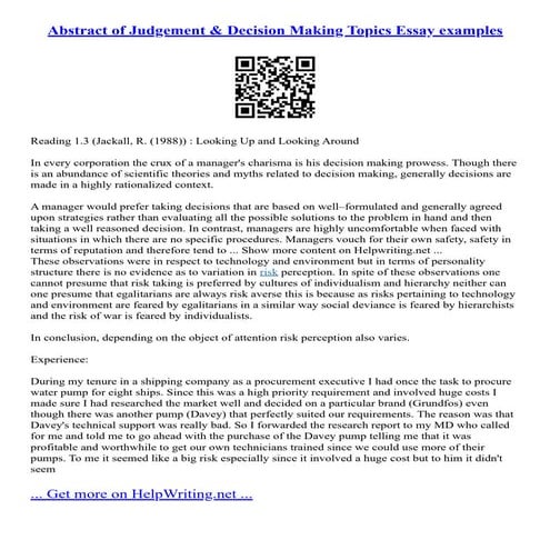 Abstract of Judgement & Decision Making Topics - PHDessay.com
