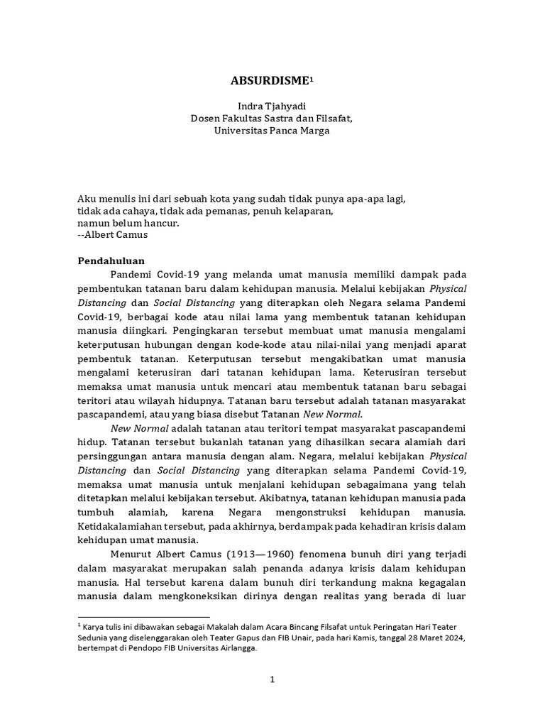 Choirul Muttaqien - Absurdisme Camus | PDF | Filsafat