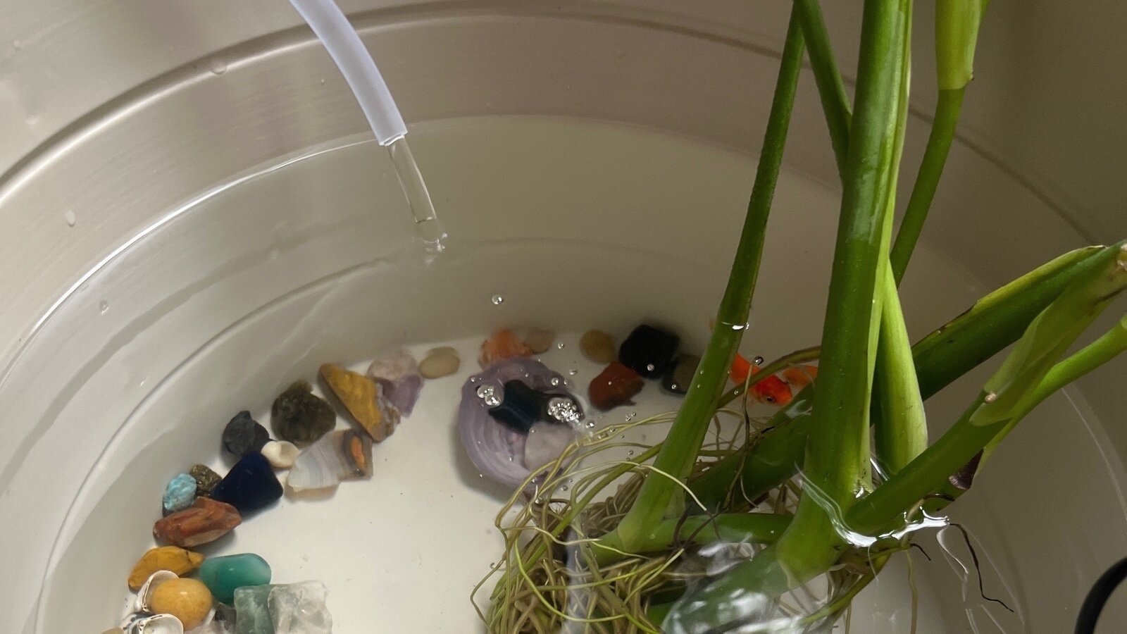 Baby pearl scale goldfish died due to swollen abdomen. Small aquarium ...