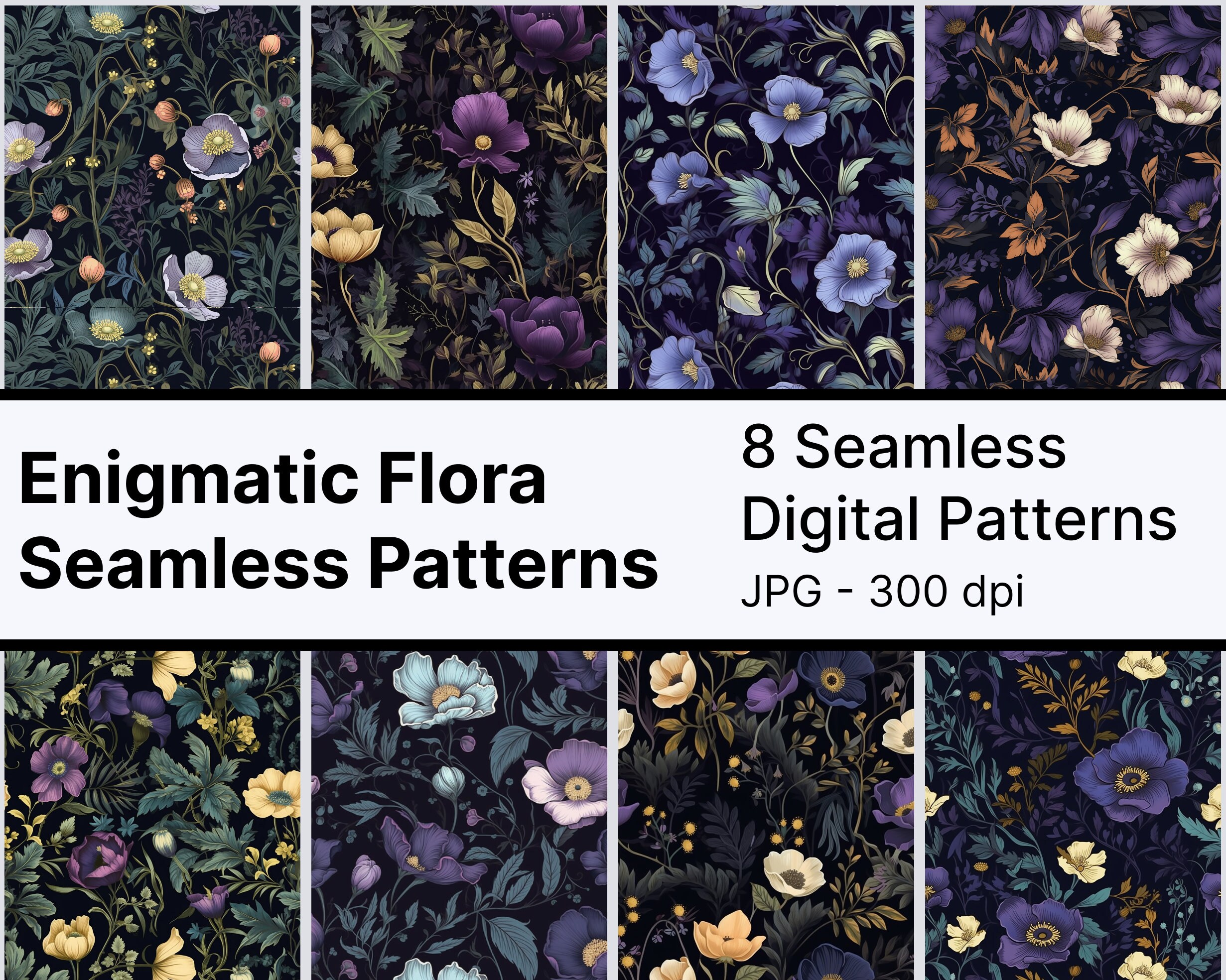 Dark Academia Purple Floral Pattern Set Digital Prints, Seamless ...