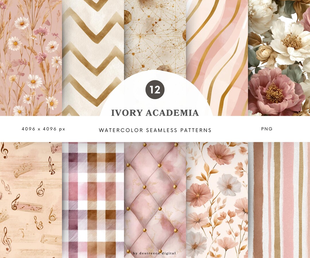 Watercolor Ivory Academia Seamless Patterns, Light Academia Pattern ...