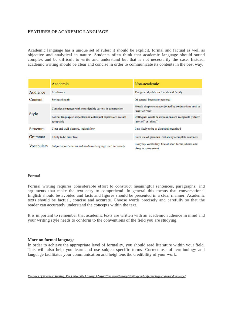 The Language Features of Academic Texts