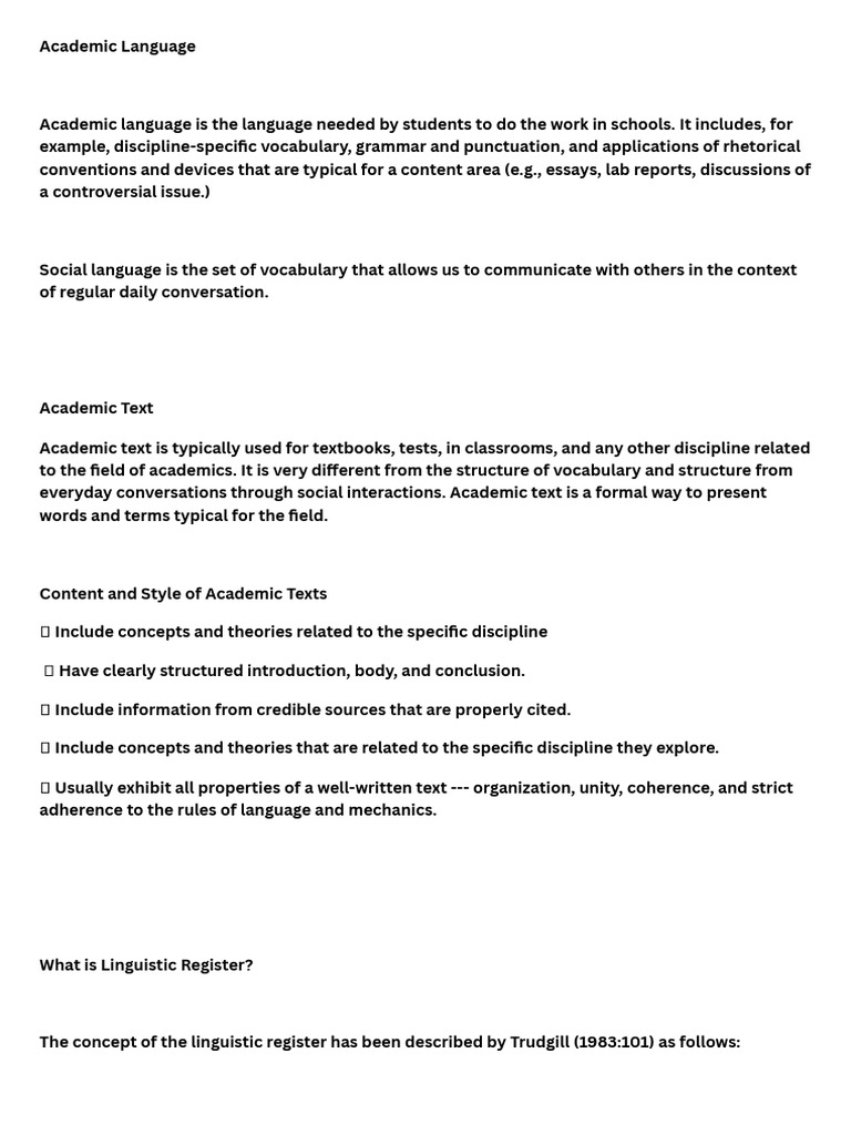 Academic Language - 20241028 - 114058 - 0000 | PDF | Linguistics ...