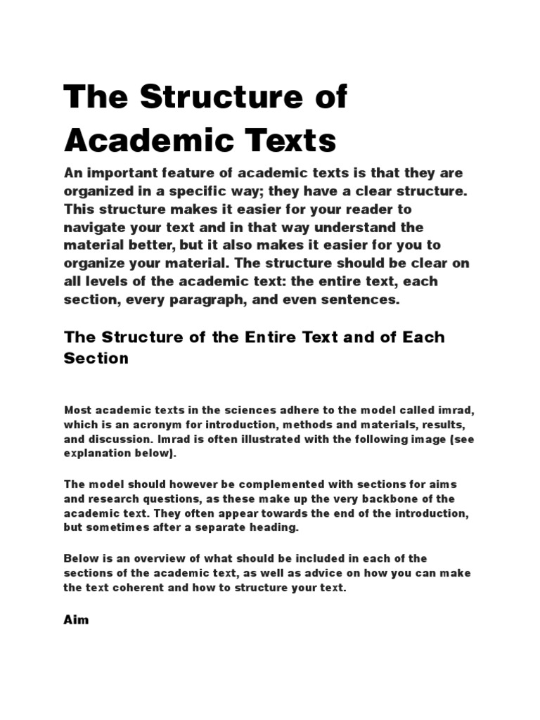 The Structure of Academic Texts - This structure makes it easier for ...